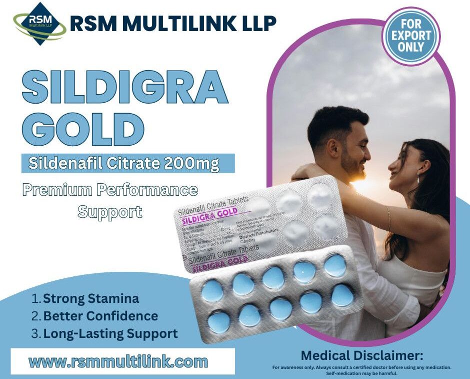 Sildigra Gold 200mg is a pharmaceutical approach to tackling ED in men by making use of Sildenafil Citrate 200mg that relaxes the blood vessels in the penis thereby promoting firm erections that can be sustained. The Medicine is manufactured by RSM Multilink LLP.