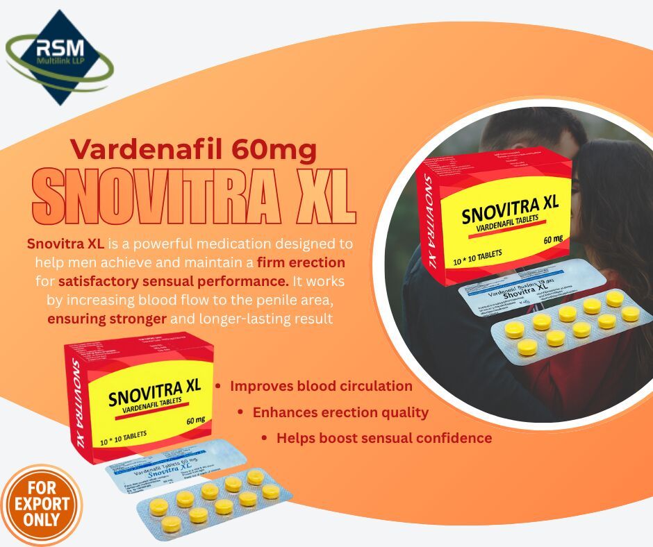 Snovitra XL is a chewable Medicine that is used to treat ED in men by making use of Vardenafil 60mg that improves libido and sexual function in the penis thereby promoting firm erections that can be sustained. The Medicine is manufactured by RSM Multilink LLP.